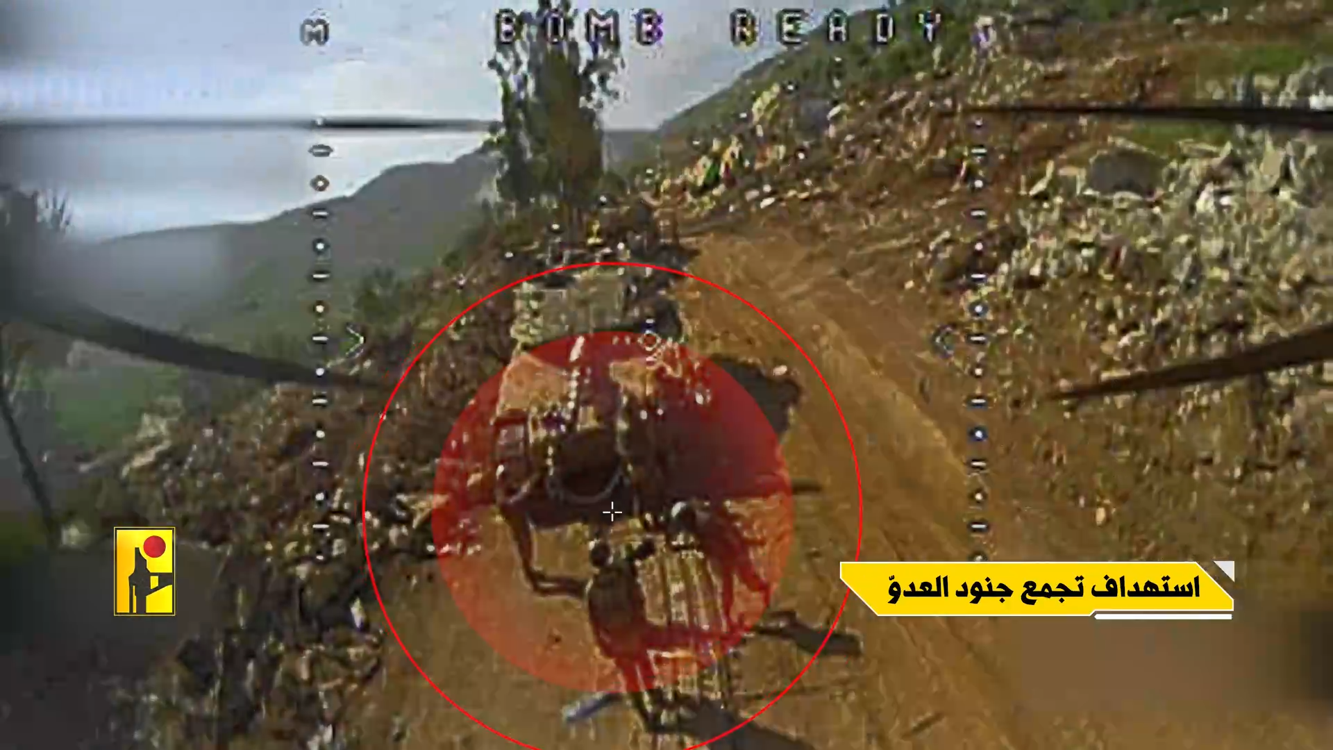 وأبانت اللقطات لحظة "استهداف تجمع جنود العدو"، حيث أصابت المحلّقة الأولى بشكل مباشر "6 جنود" إسرائيليين.